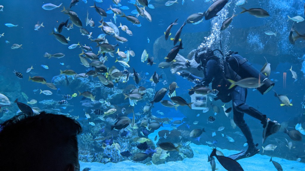 It was 173 THB with inDrive to go to the aquarium, but I paid 200 ($5.28 USD) and by 2:30 PM I had arrived to the central Phuket mall, which is where the aquarium is located in the basement. There I paid a full price foreign adult entry fee of 890 THB (23.50 USD); I think I could have paid a bit less if I had bought the ticket through another online provider, but I wasn’t sure that I would be getting the “foreigner ticket” so I decided to just buy in person and go straight in. Again, as far as I could tell, it was either cash or “Thai pay” only; however, I didn’t ask.