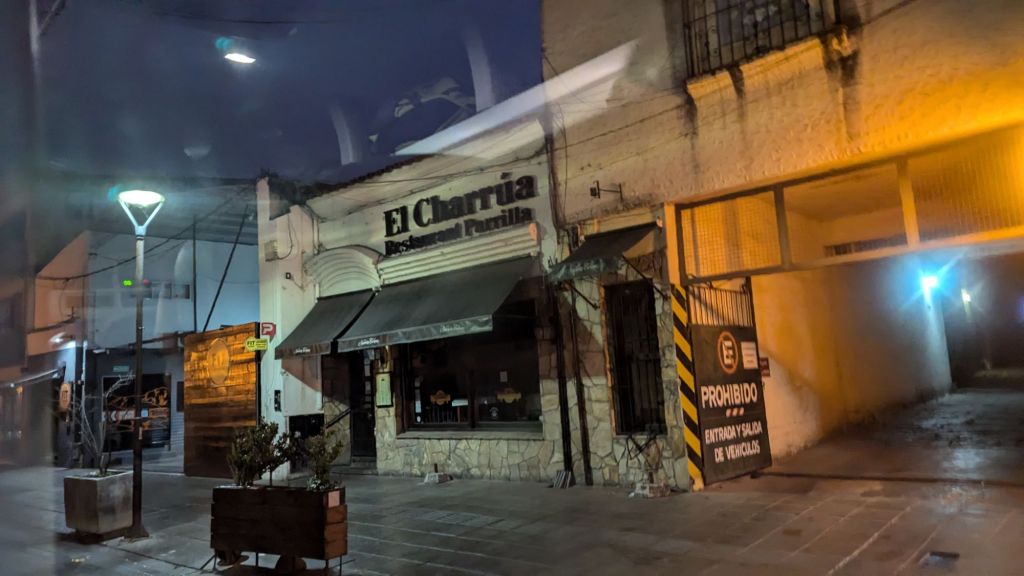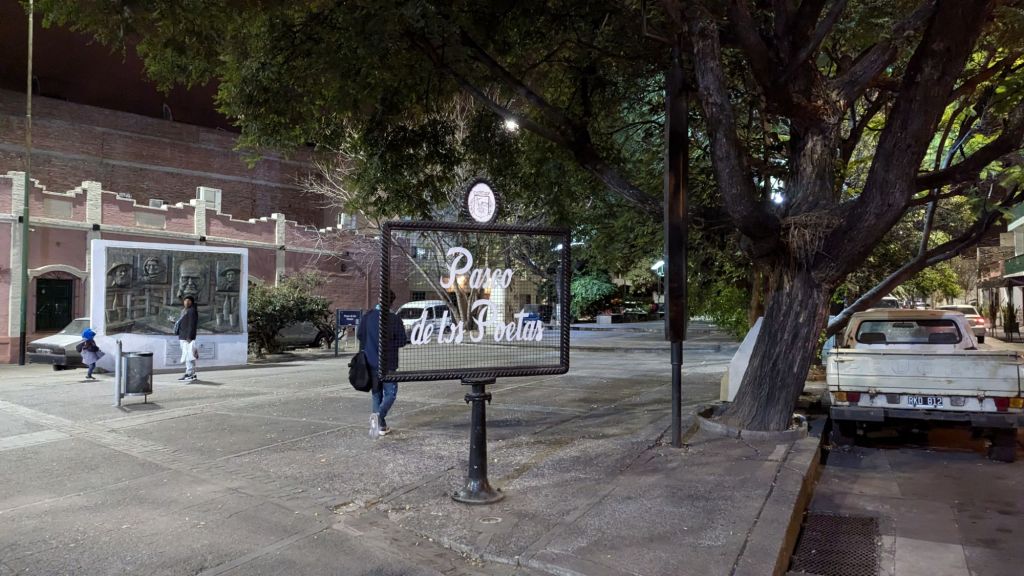 Finally at 8:41 PM I was dropped off right outside my apartment in Salta. However, I decided to go straight to the nearby Paseo de las Poetas to get food. While I quickly arrived at 8:46 PM, I immediately saw it much less busy than last night. Almost nothing was open. Incidentally, I again saw two police officers. To be sure, I see police here everywhere. Was there really that much crime, or would it be chaos without them?