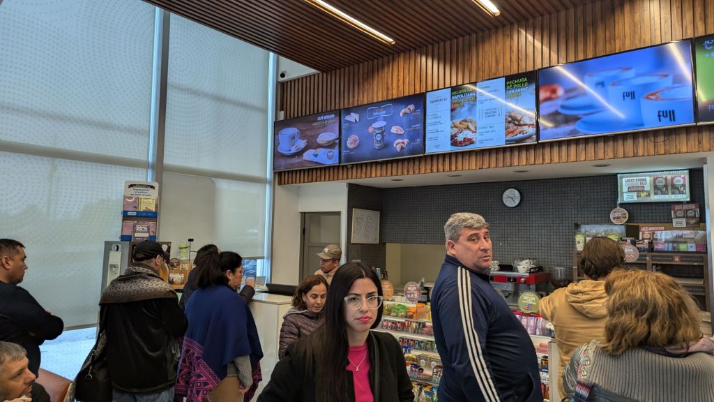 Then at 6:28 PM we stopped at the same gas station as before and I bought an over-priced coffee with milk for 2750 ARS cash. Shortly thereafter we continued on our way, and at 7:50 PM I noted that we still had 45 minutes left of travel