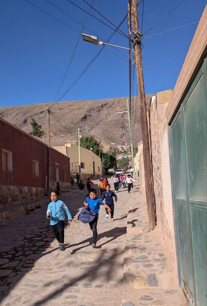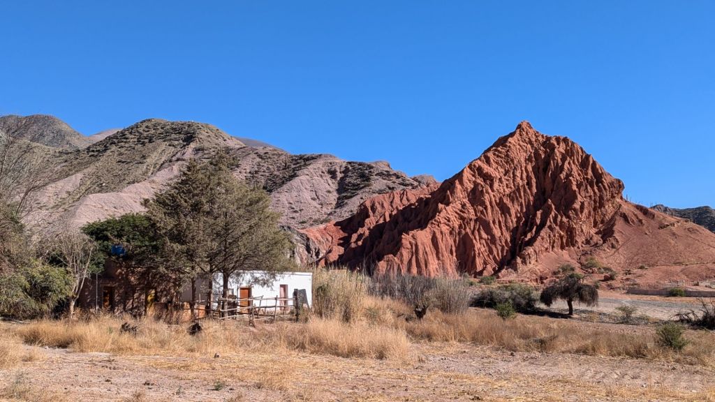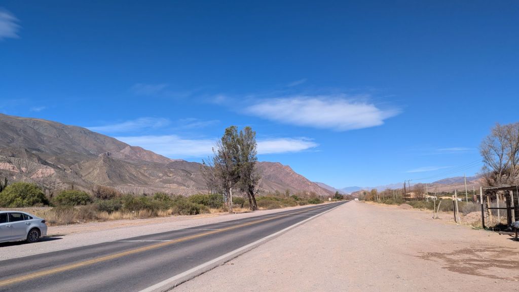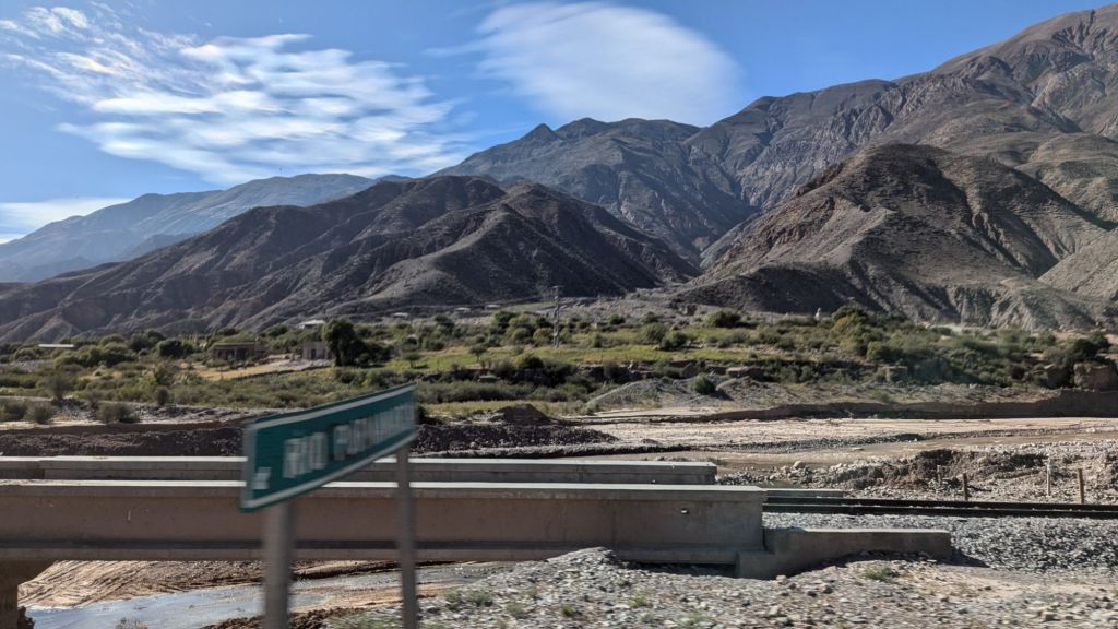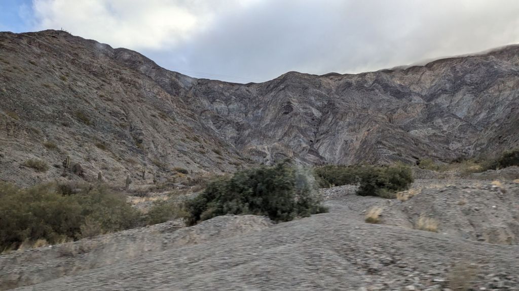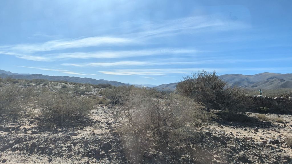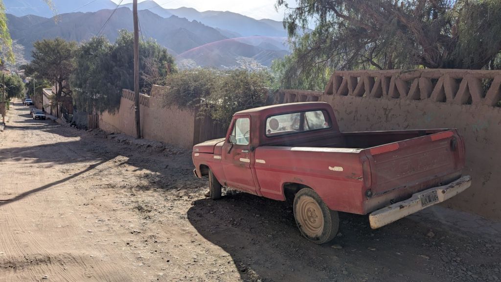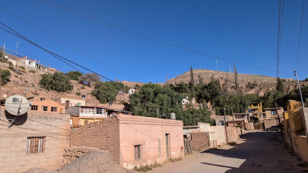 Fortunately at 3:14 PM we were on our way back down again, arriving to Huacalera at 3:46 and immediately transferring to the other transport. Cachete came through to ask for tips, and I gave 1000 ARS even though I didn’t hear anything he had said. However, he had given me a coco candy and several sniffs of his magic liquid, which might have helped with me not having altitude sickness. I would have also like to walk around the town of Huacalera a bit, but there was no time.
