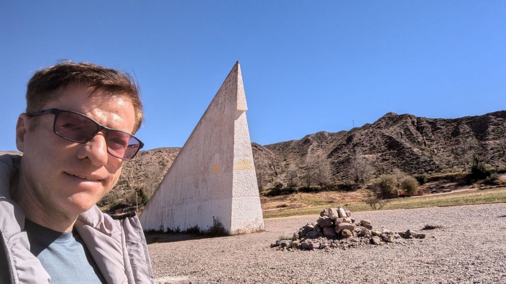At 12:11 PM we made a quick stop at Huacalera where there is a monument to mark the Tropic of Capricorn line. There I took a couple of obligatory pictures. Throughout the trip I’ve noticed that while there are frequently opportunities to buy souvenirs, the salespeople don’t hassle or chase after you. This might be because bargaining isn’t a big thing here . . If you like the price, you buy it. If you don’t, you don’t, and everybody seems fine with that.