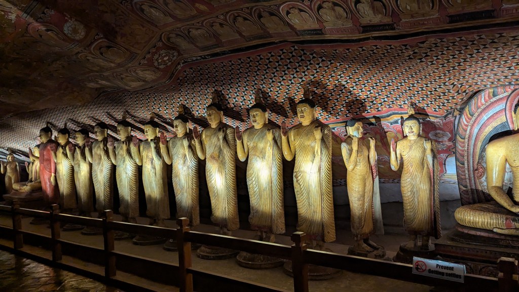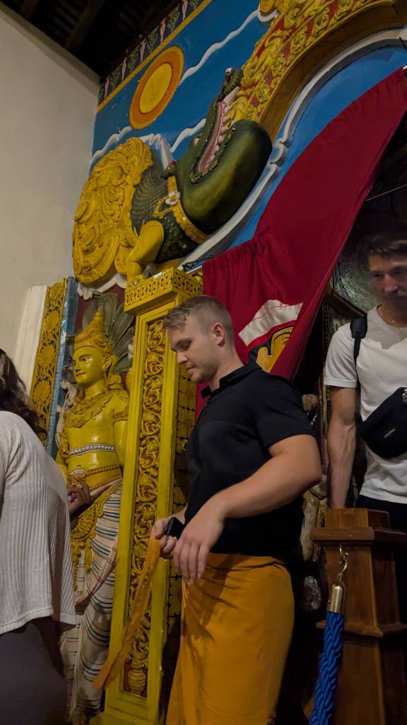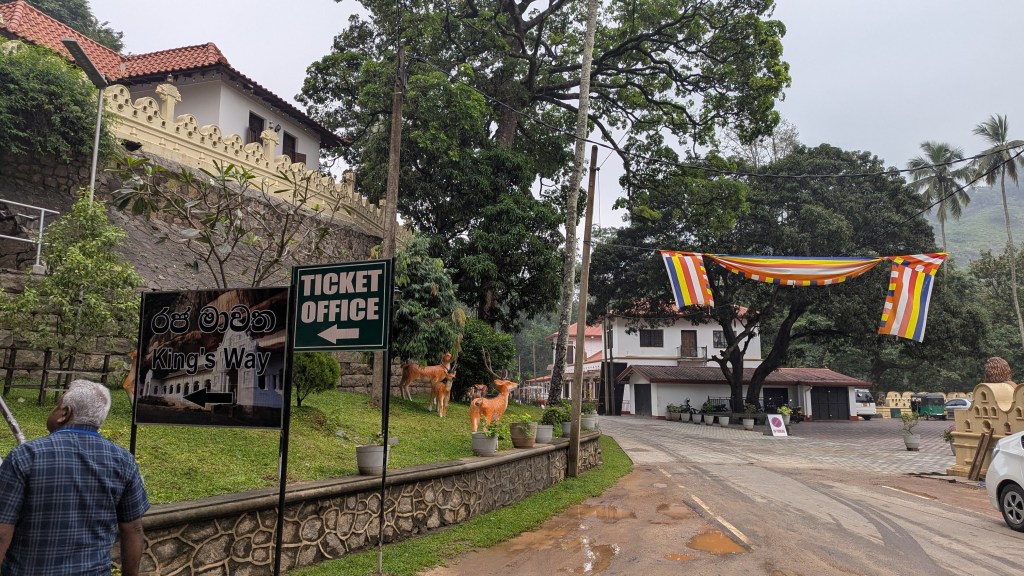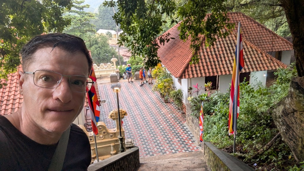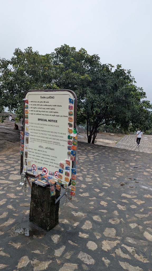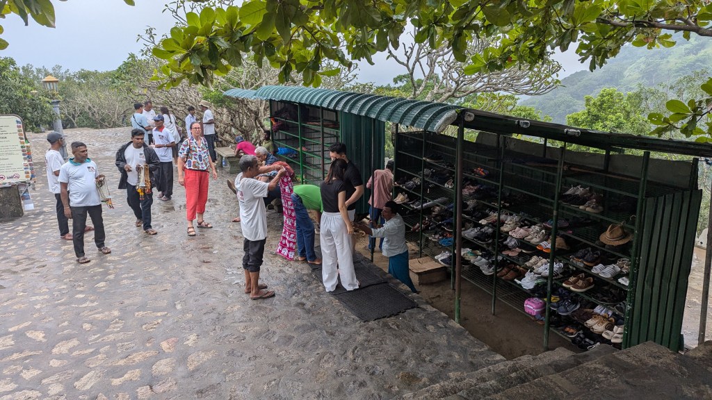 Keeping that in mind, our 7:30 AM breakfast was uninspiring, and I couldn’t be bothered to take any pictures. However, I appreciated that Laurianne shared some of her nice pour over Colombian coffee packets which she had brought along and then prepared for us herself. The departure from the homestay, for which Laurianne and I at least were happy to leave, was at 8:30 AM. Eric, our driver, told us that it would be 20 minutes for us to get to our first stop. His timing was a bit off, but at 9:05 AM we were at another temple with a lot of stairs, with a cost of 2000 LKR ($6.84 USD) for us to be able to go up. The stairs themselves were not that terrible, and by 9:17 PM we were already at the place where you probably already guessed, we would once more have to take off our shoes. However, unlike where we had been yesterday, there was a whole system for keeping the shoes safe while one entered the religious site.