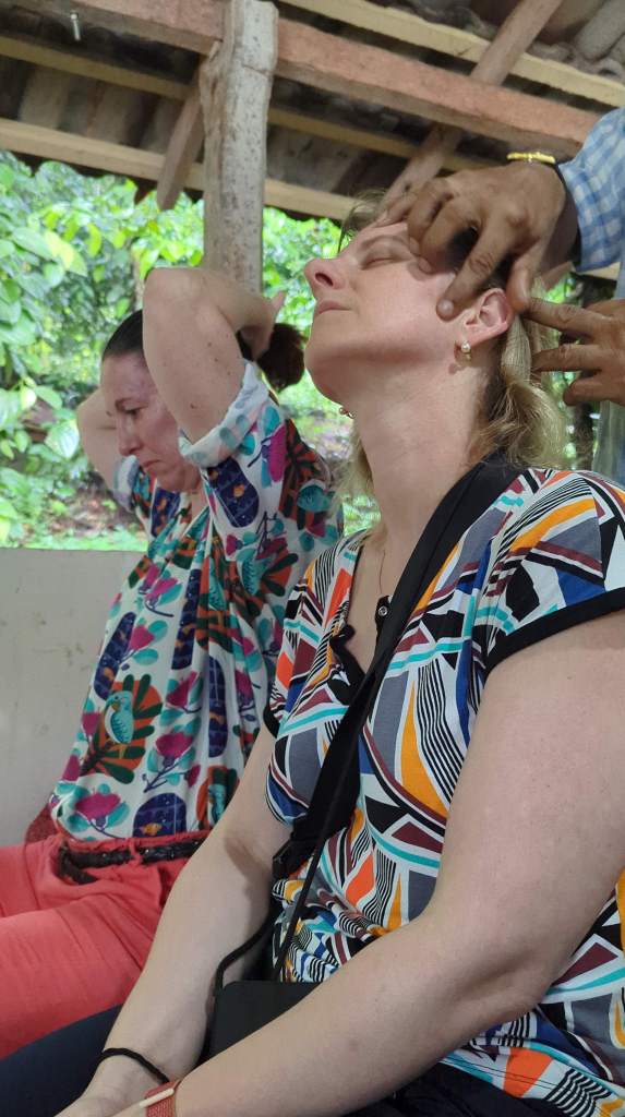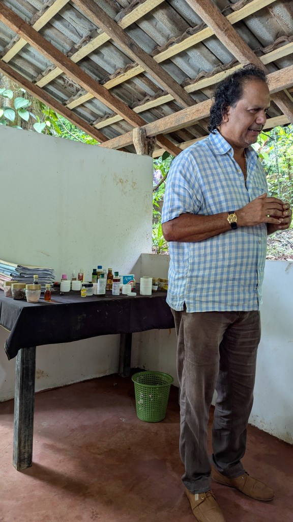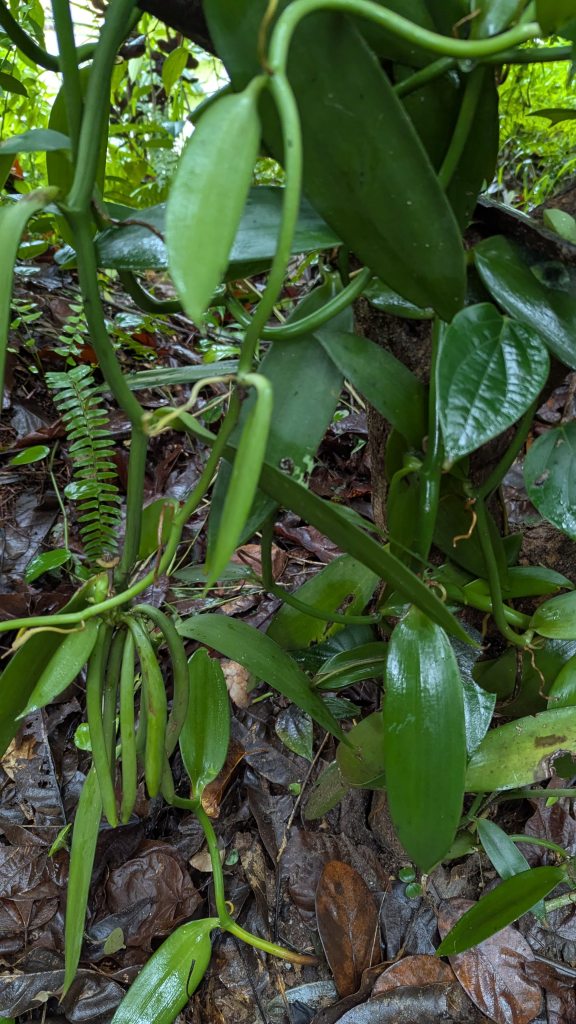 Some fun facts learned were the following. One of the reasons that Vanilla is so expensive is that most of it is artificially pollinated. The self-defense spray Mace is an extract from Nutmeg. There are more than 500 types of Aloe Vera. There are two types of Sandalwood, I think one is red, and the other is yellow. Turmeric is frequently used for preserving food, similar to salt, and Clover powder used to be commonly used to clean teeth. Once we were up to the hut area, he made the most of his marketing spiel to explain how these different mixed creams and oils can cure/fix everything one can imagine, and as part of the sales pitch smeared creams and oils on Dorothee and Laurianne, but I politely declined all of that. I did however enjoy smelling some of the essences.