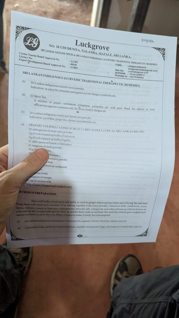 I had no intention of buying any of the stuff in the shop, but I had been entertained by the guide, so when he left us at the shop at 12:06 PM, Laurianne and I each gave him a 1000 ($3.42 USD) LKR tip. Dorothee and Laurianne then did a bit of shopping in the store, with us then once again in the van at 12:20 PM.