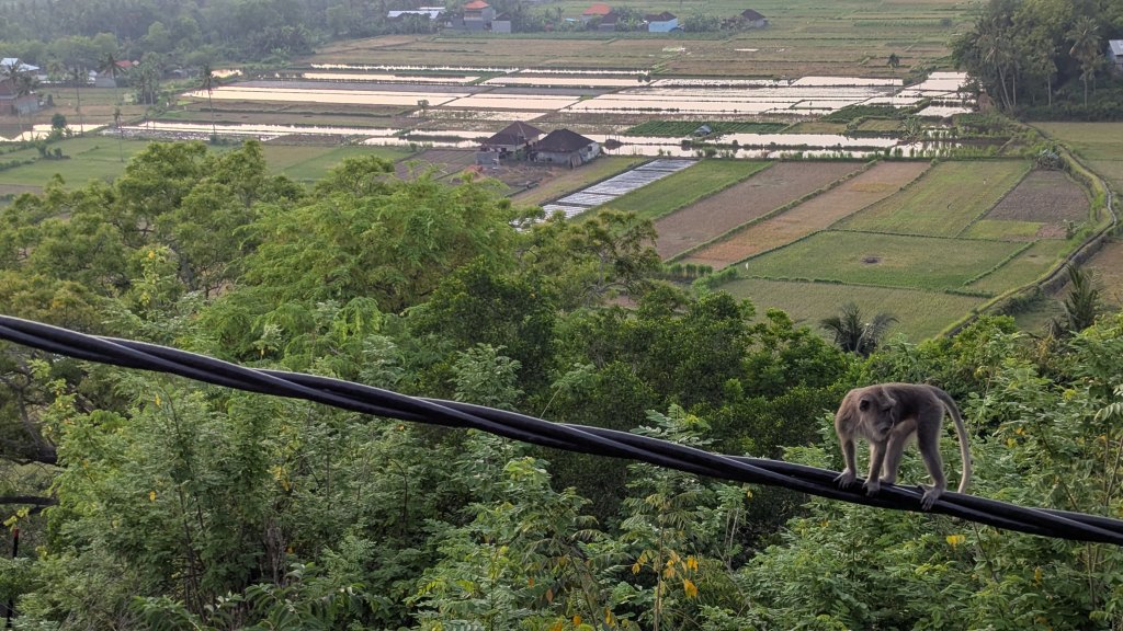 Unfortunately as we were departing at 4:20 PM, I made the mistake of asking our guard why the bat didn’t fly away. He said that the owner of the restaurant had intentionally broken the bat’s wing so that it would become dependent on him, in the process becoming a tourist attraction . . . I have since then searched for more information on this and can’t find anything to confirm this. However, this appears to be a known practice in Bali. Is that what happened here? I don’t know, but if so, that would be a reason to skip this otherwise pleasant lunch destination.