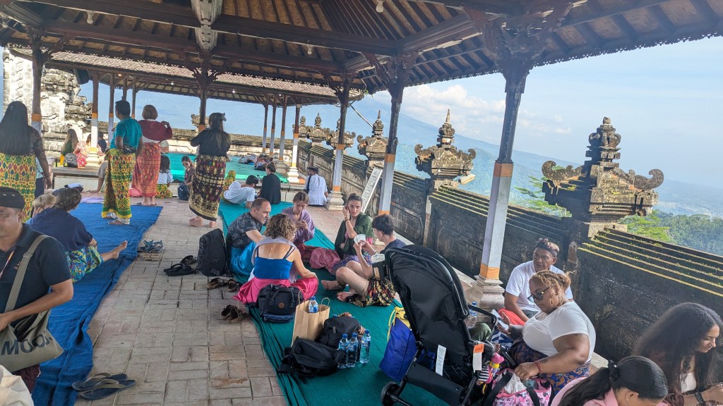 At 7:49 AM I paid 60500 IDR ($3.63 USD) for my cold coffee, and we headed up the short hill, arriving to the actual temple at 7:55 AM. They toss a bit of water on you when you enter “to purify” you, and this is not optional. It all seemed absurdly performative, as there was nobody actually telling us anything about the temple itself, and nobody in attendance seemed to care. This was clearly only about getting the pictures.